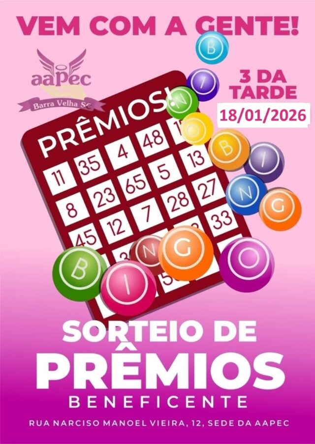 O sorteio será realizado na Rua Narciso Manoel Vieira, nº 12, sede da APEC, em Barra Velha. A organização convida toda a população a participar e contribuir com essa causa tão importante.