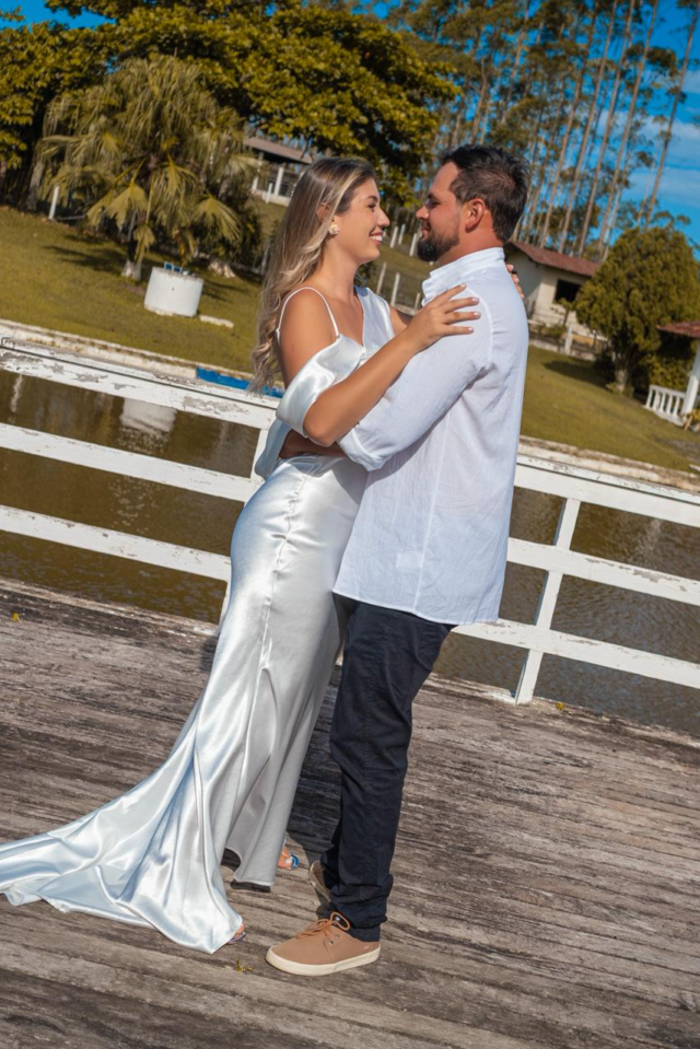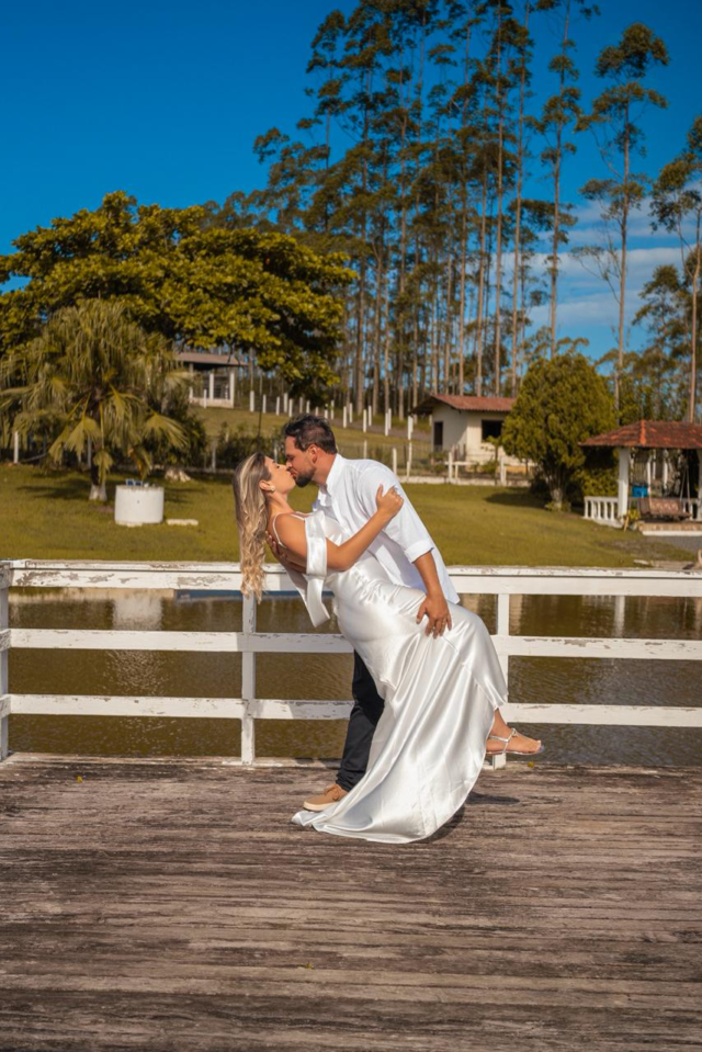 Realizado no charmoso Medeiros Garden, em Barra Velha, o cenário escolhido não poderia ser mais perfeito — um verdadeiro cartão-postal que combinou com a sintonia dos pombinhos.