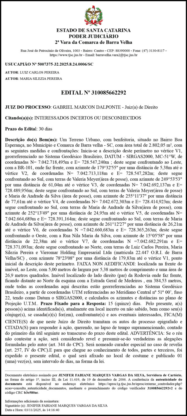 Autos n° 5007375-32.2025.8.24.0006/SC