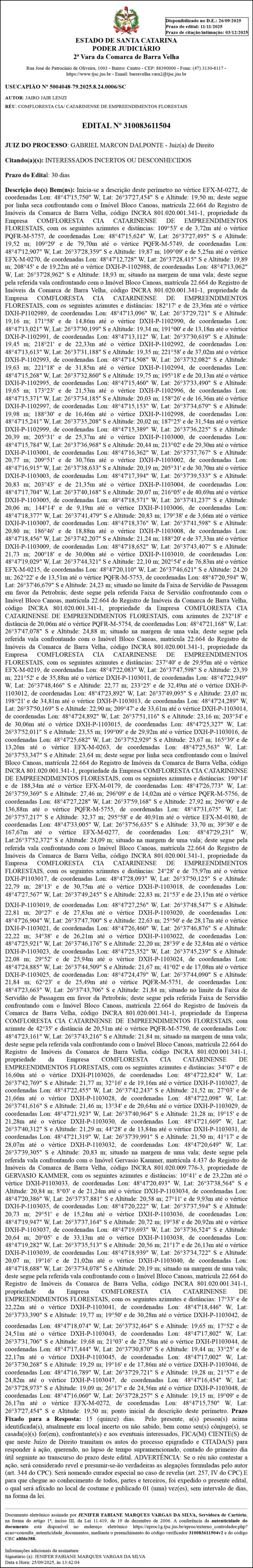 Autos nº 5004048-79.2025.8.24.0006/SC