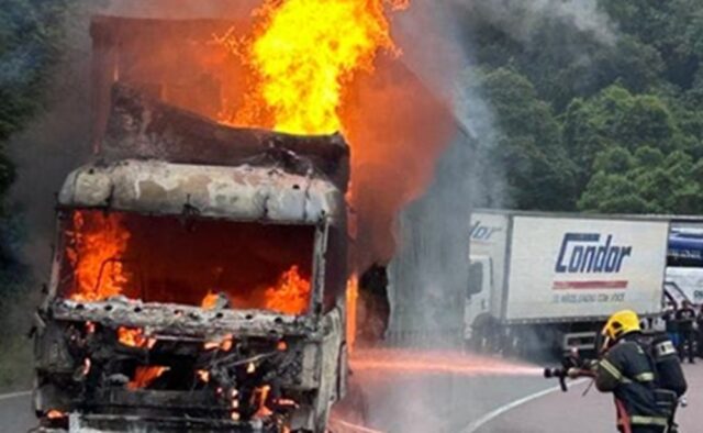 De acordo com a Polícia Rodoviária Federal, o veículo seguia no sentido Santa Catarina quando as chamas começaram. Apesar do incêndio de grandes proporções, ninguém ficou ferido.