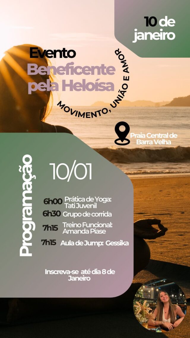 A solidariedade vai tomar conta da Praia Central de Barra Velha no próximo dia 10 de janeiro, com a realização do Evento Beneficente pela Heloísa, uma mobilização que une esporte, saúde, movimento e amor em prol de uma causa maior.