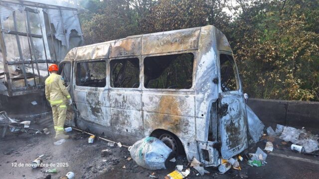 Entre os veículos atingidos estava uma van com 12 crianças e adolescentes, além do motorista, que seguiam viagem rumo ao Beto Carrero World.