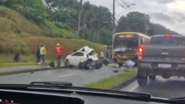 “Equipes do Corpo de Bombeiros atenderam prontamente a ocorrência, prestando socorro ao motorista do ônibus, a um passageiro e ao condutor da moto. Infelizmente, o motorista do automóvel veio a óbito no local”, informou a empresa.