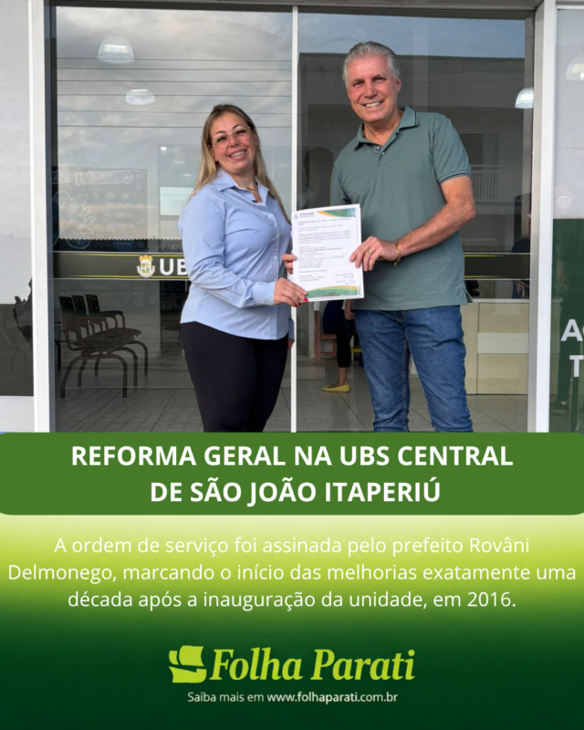 A Prefeitura de São João do Itaperiú deu início a um novo ciclo na área da saúde pública. Nesta sexta-feira (27), o prefeito Rovâni Delmonego assinou a ordem de serviço para a reforma e ampliação da Unidade Básica de Saúde (UBS) Central — principal estrutura de atendimento do município.